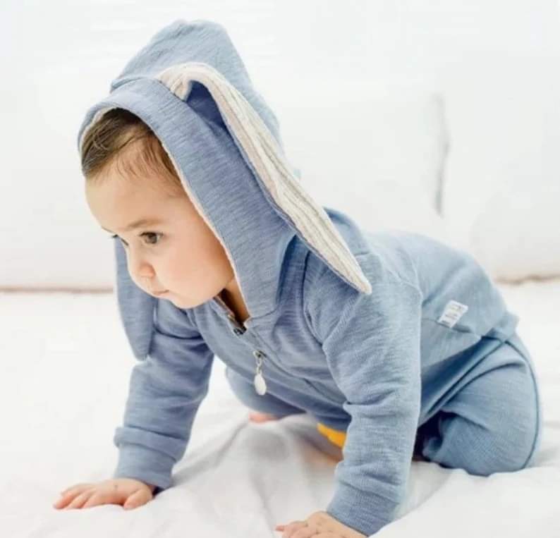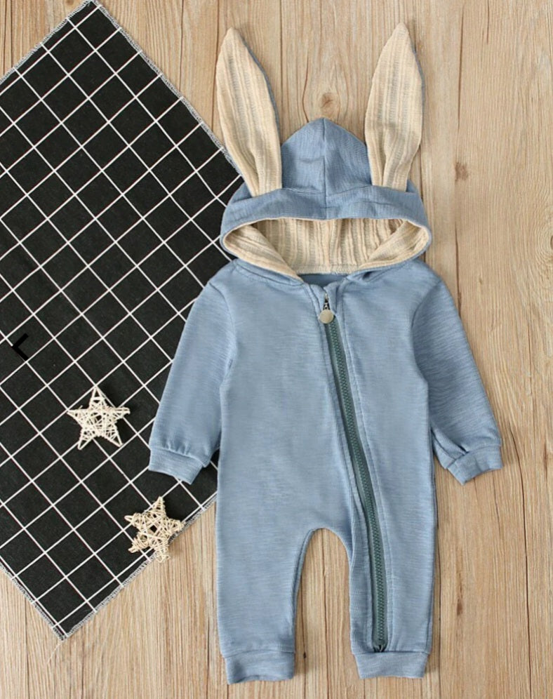 Blue Bunny Romper with Size Zipper
