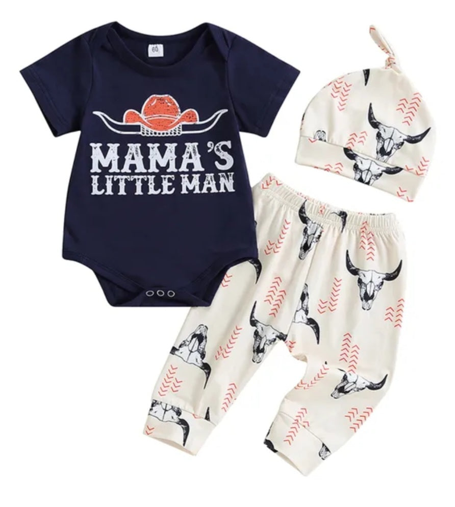 Mama's Little Man Romper, Pants and Pumpkin Hat