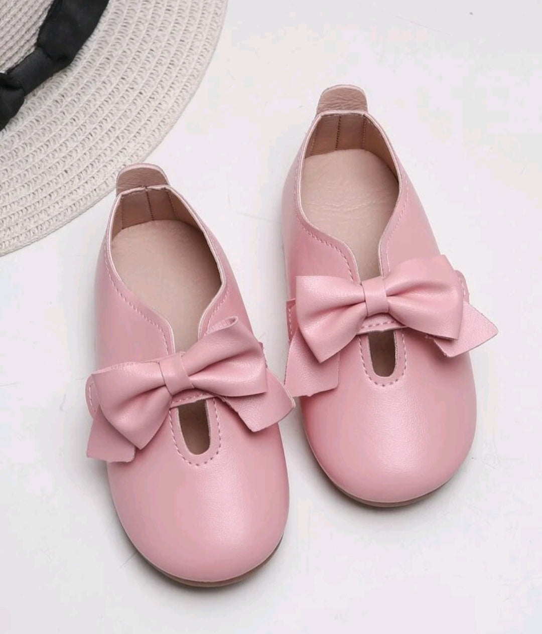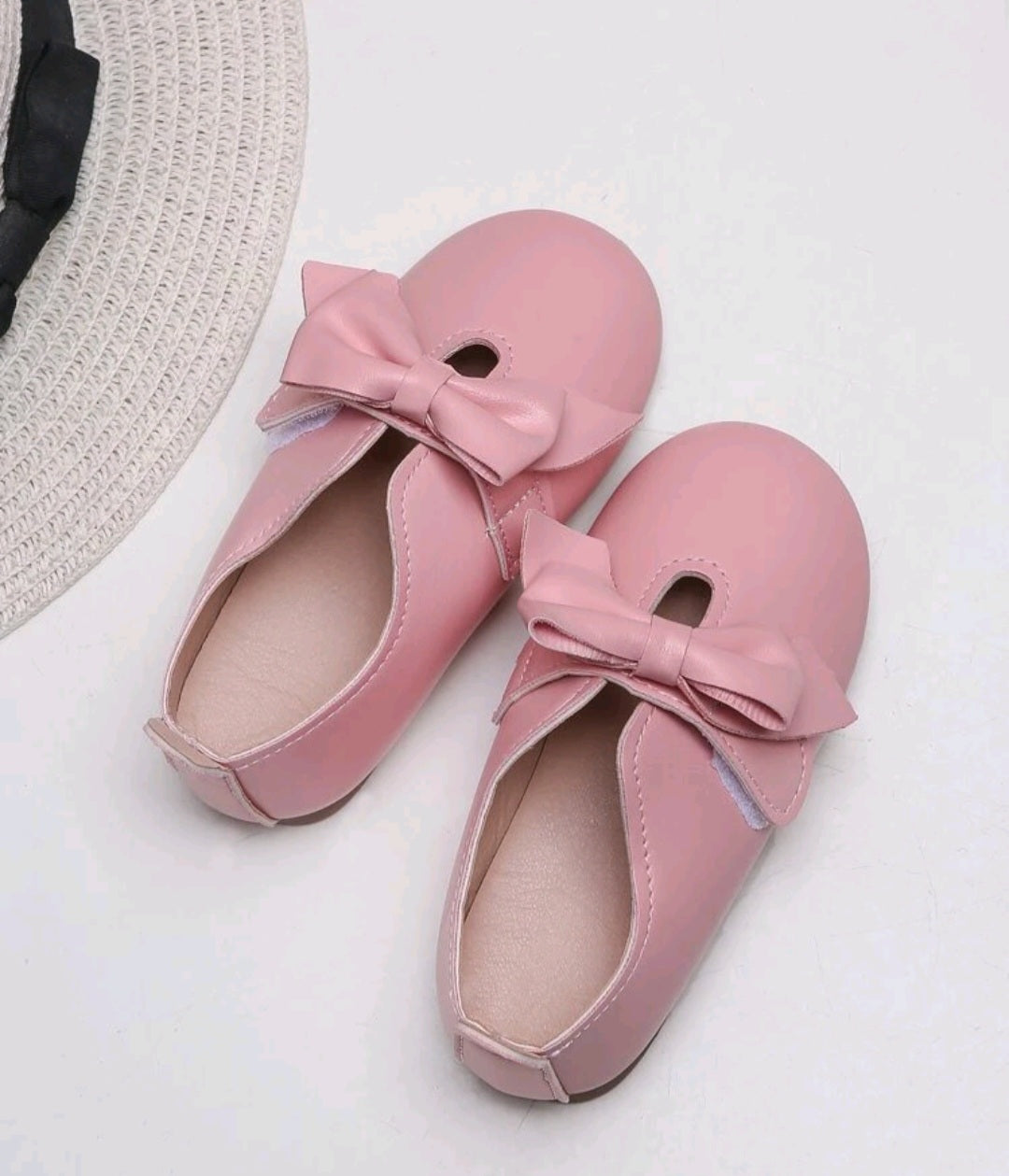 Girls Hook-and-Loop Leather Pink Flats with Bow