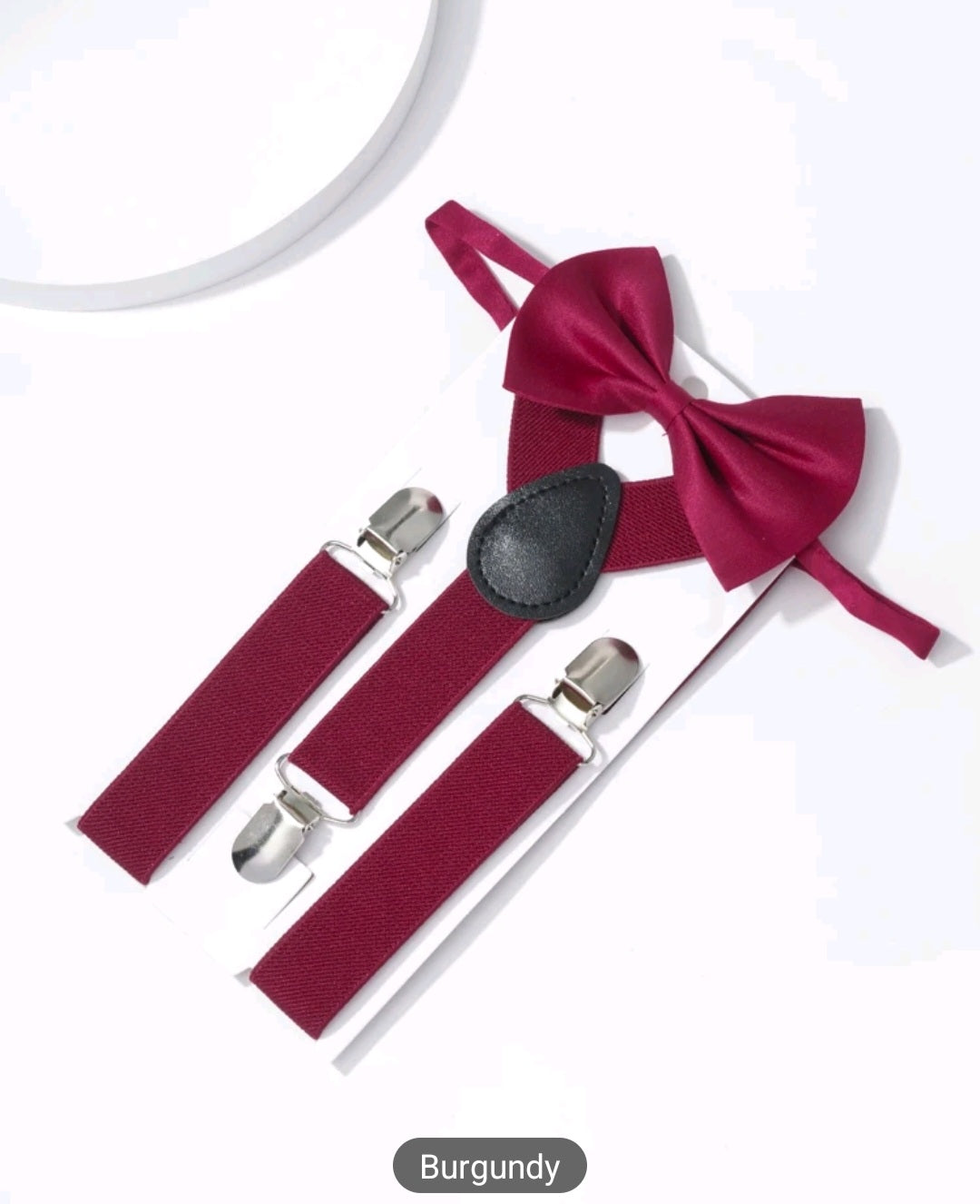 Maroon Suspenders and Silk Bowtie