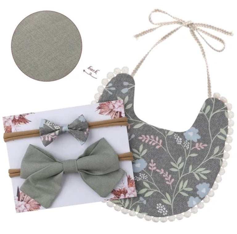Floral Reversible Bib And Headbands