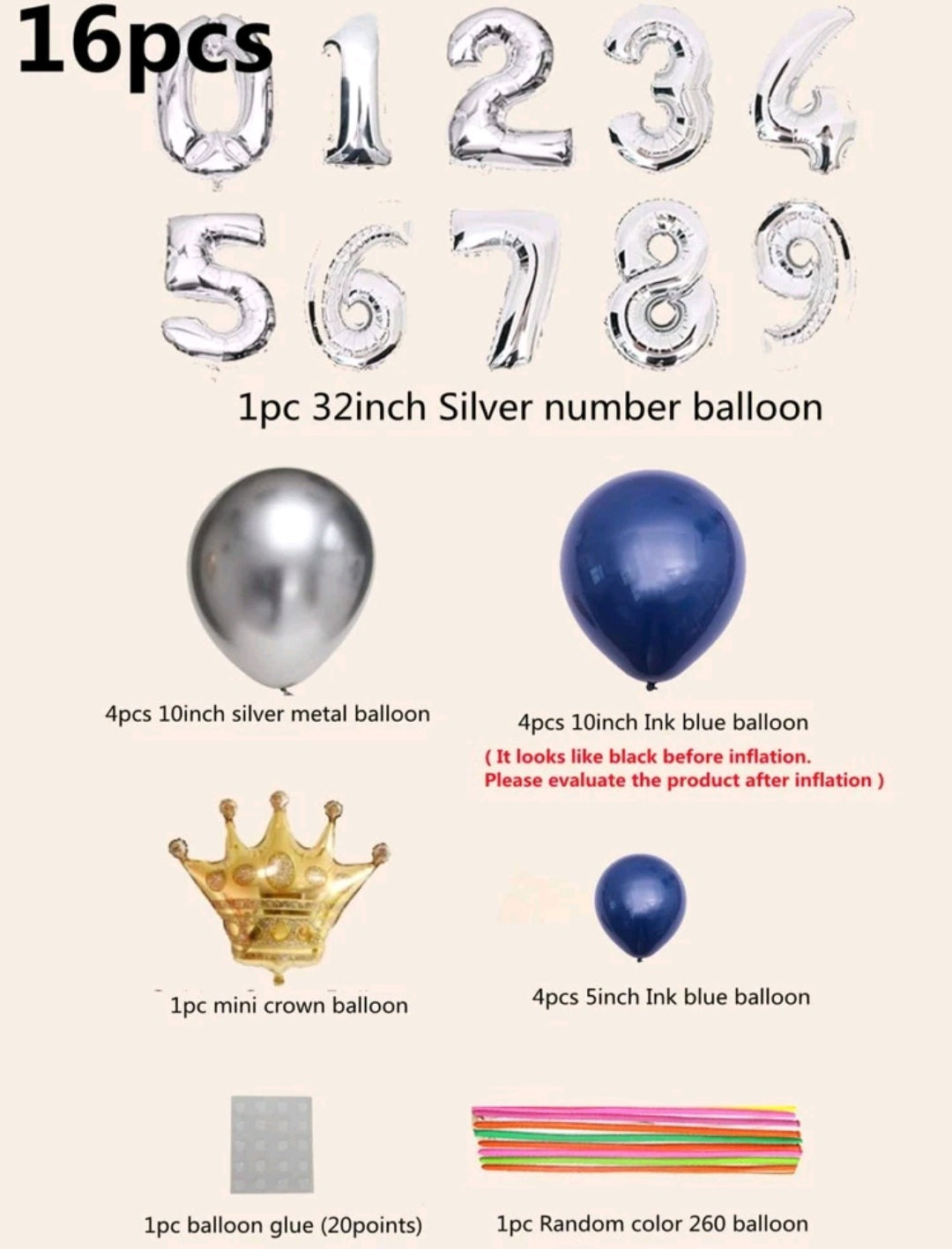 1,2 Navy, Silver and Gold 16PSC Balloon Set