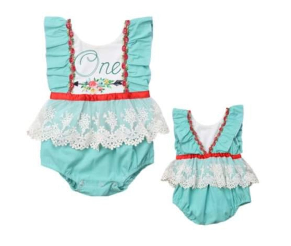Teal First Birthday Romper